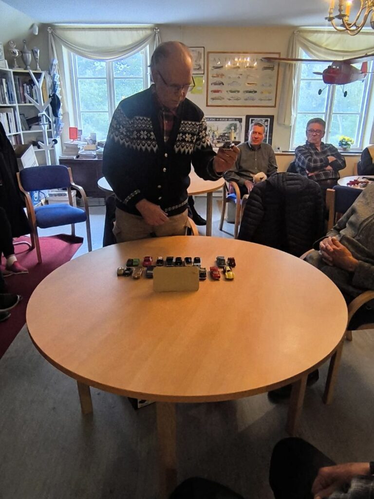 Minicirkusen i Kyrkheddinge blev i dag ett strålande exempel på vilken bredd och variation en leksakssamling kan bjuda på. Ett tjugotal entusiaster hade samlats för att lyssna till engagerade och kunniga presentationer om deltagarnas medhavda favoritleksaker. Bland höjdpunkterna fanns flera miniatyrmodeller från Simca, liksom en fascinerande samling limousiner och likbilar. En av deltagarna bjöd dessutom på en personlig kavalkad av bilmodeller som funnits i familjens ägo genom åren – ett uppskattat och charmigt inslag. Även en rar samling Dinky Toys från 1950-talet väckte stor uppmärksamhet bland besökarna.